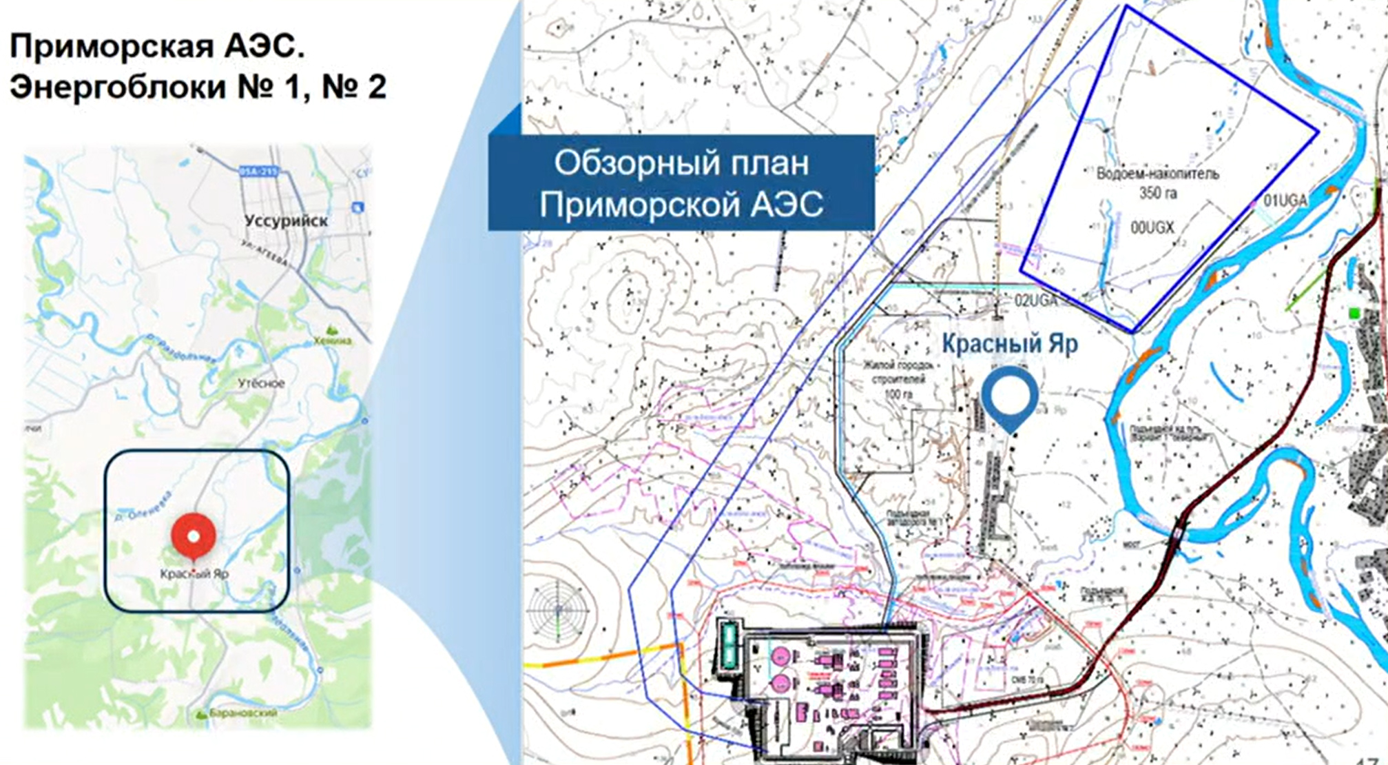 «В результате комплексного анализа приоритетной для размещения АЭС определена площадка вблизи Красного Яра «Раздольное», в 14 км от Уссурийска, на данный момент запрещающих факторов не выявлено. Изыскания все еще продолжаются, – сообщил директор по науке и инновациям АО «Атомэнергопроект» Сергей Егоров. - Мы проектируем объект с консервативным запасом по всем природным явлениям. Он должен выдержать любые вызовы, включая те, что случаются раз в тысячелетие. Сочетание правильно выбранной площадки, отработанных десятилетиями технических решений ВВЭР и современных пассивных систем безопасности обеспечивает устойчивость станции к землетрясениям, ураганам и наводнениям с кратным превышением проектных значений».