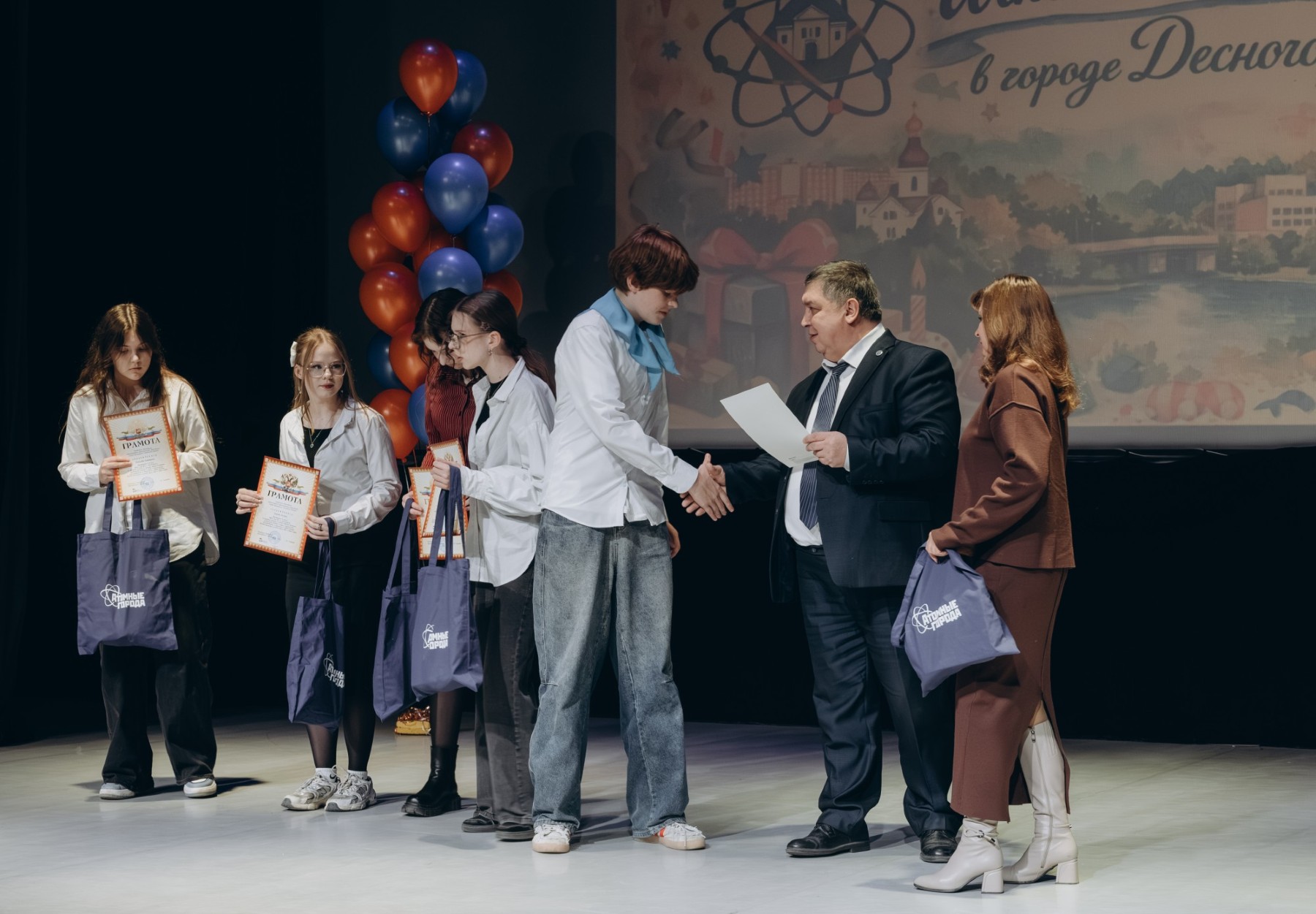 Центральным событием праздника стала торжественная церемония награждения. Директор Смоленской АЭС Иван Сидоров и и.о. главы города Злата Бриллиантова вручили почетные грамоты и благодарственные письма самым активным участникам проекта «Школа Росатома». За проявленный интерес к науке, инициативность и стремление к знаниям были отмечены 16 школьников из всех учебных заведений города. За высокий профессионализм, творческий подход и значительный вклад в развитие подрастающего поколения награды получили 11 педагогов и методистов.