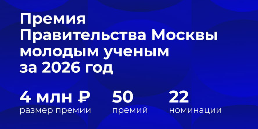 Открылся прием заявок на соискание премии Правительства Москвы молодым ученым за 2026 год. Размер премий составляет 4 млн рублей. Всего присудят 50 премий. Участники представят проекты в 22 номинациях.