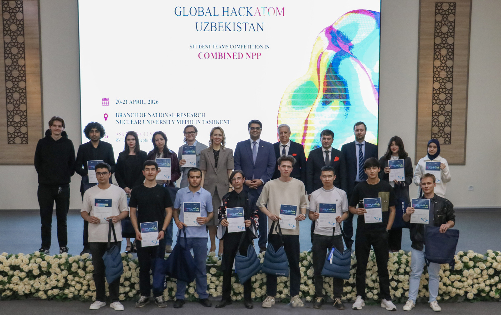 С 20 по 21 апреля в Ташкенте проходил национальный этап чемпионата «Глобал Хакатом» (международный инженерный хакатон, объединяющий молодых специалистов атомной отрасли из разных стран). В мероприятии приняли участие более 100 студентов из семи университетов Узбекистана: Ташкентского филиала Национального исследовательского ядерного университета «МИФИ» (ТФ НИЯУ МИФИ), Самаркандского государственного университета, Ташкентского института инженеров ирригации и механизации сельского хозяйства, Ташкентского государственного технического университета и других.