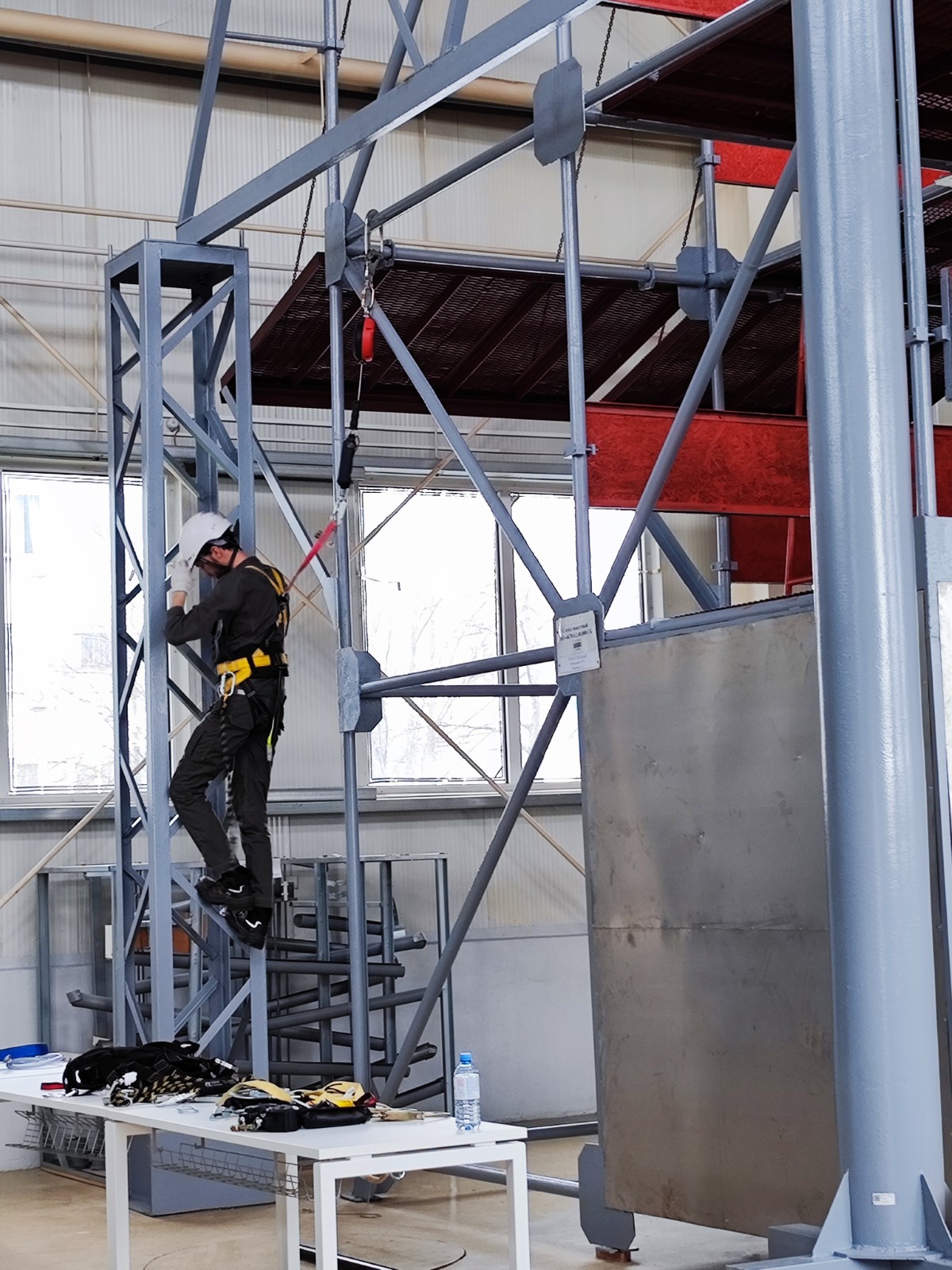 Практическая часть семинара прошла на специально оборудованном макете-стенде, позволяющем отрабатывать безопасные навыки и приёмы работы на высоте. Благодаря наличию крытого полигона обучение возможно в любое время года и при любых погодных условиях, что делает процесс подготовки персонала более гибким, непрерывным и комфортным.