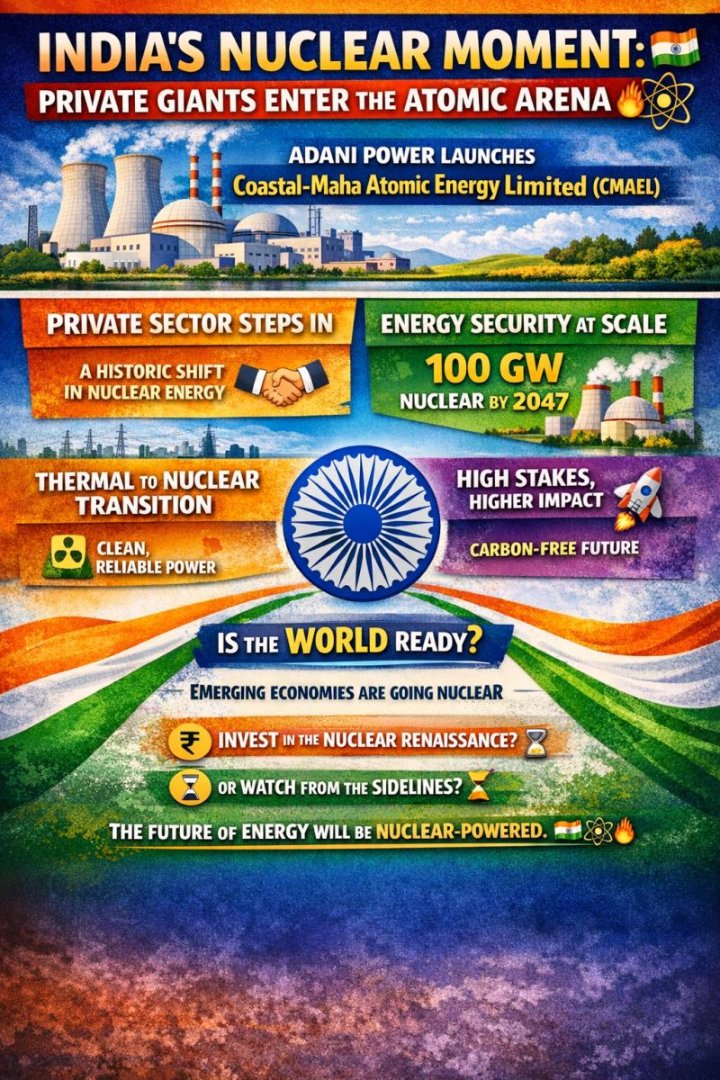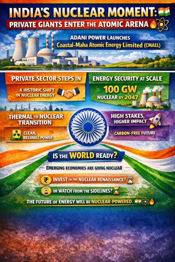 Компания Adani Power уведомила Национальную фондовую биржу Индии о том, что её полностью принадлежащая дочерняя компания Adani Atomic Energy Limited учредила Coastal-Maha Atomic Energy Limited 13 апреля. Свидетельство о регистрации было получено 18 апреля.