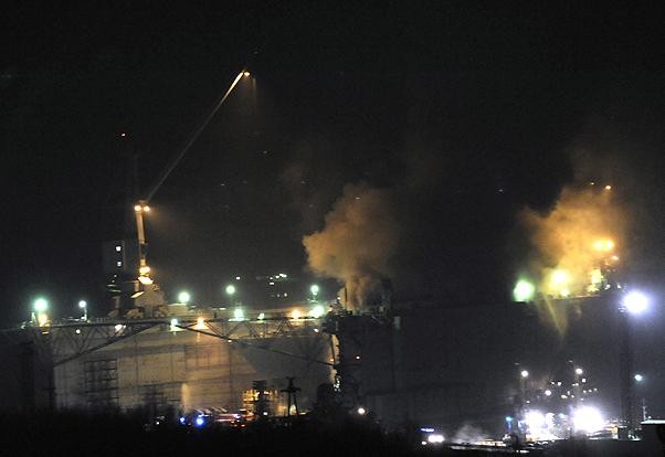 Как стало известно в пятницу утром, пожар на АПЛ «Екатеринбург» полностью локализован. Ночью пожарные и спасатели занимались проливкой конструкции, а именно – поверхности легкого корпуса и пространства между легким и прочным корпусами.