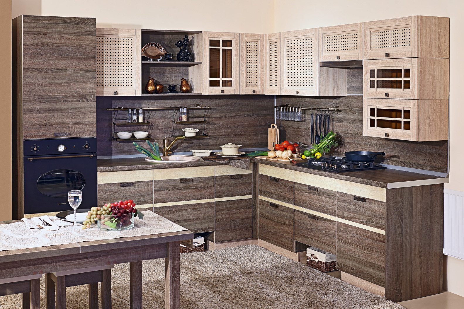 - Материалы — ключ к визуальному восприятию кухни. Именно они делают интерьер стильным и долговечным.