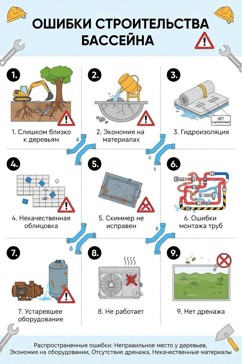 - Бассейн строится на десятилетия — экономия на ключевых элементах обернётся проблемами через 2–3 года;