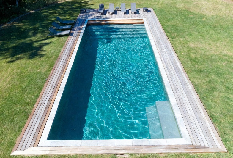 На компактной территории (до 6 соток) стоит рассмотреть бассейн длиной 4–6 метров. Он не займёт всю площадь и оставит место для зоны отдыха. На участках от 10 соток можно позволить себе чашу 8–12 метров с полноценной террасой вокруг.