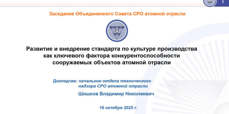 Развитие и внедрение стандарта по культуре производства и культуре безопасности как ключевого фактора конкурентоспособности сооружаемых объектов атомной отрасли