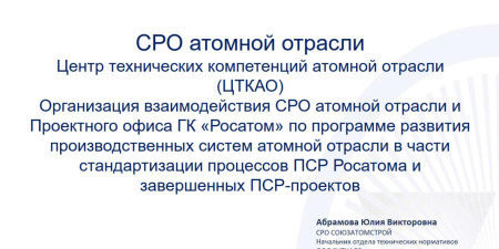 Об организации взаимодействия «СРО атомной отрасли» и Проектного офиса ГК «Росатом» по программе развития производственных систем атомной отрасли в части стандартизации процессов ПСР Росатома и завершенных ПСР-проектов