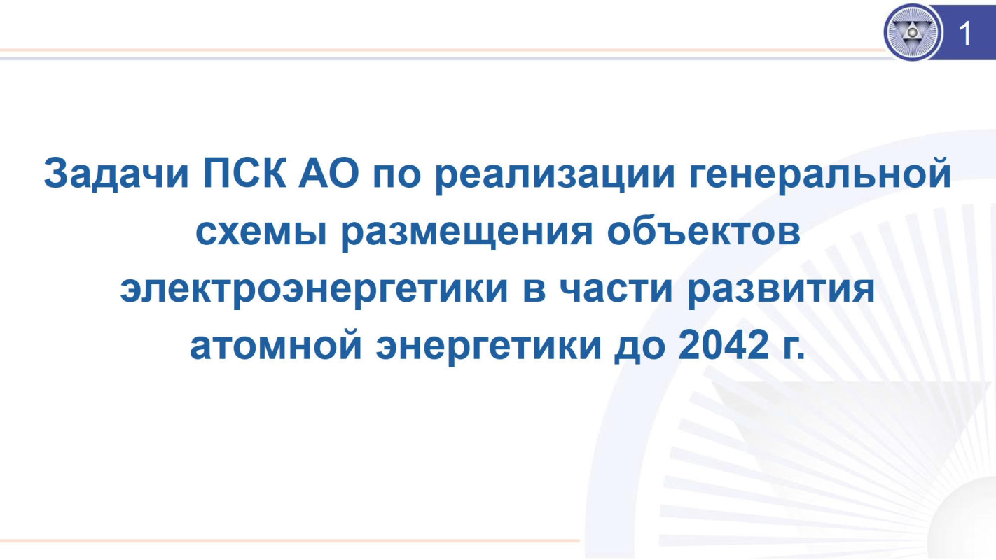 Задачи ПСК АО по реализации генсхемы размещения объектов электроэнергетики в части развития атомной энергетики до 2042 г.